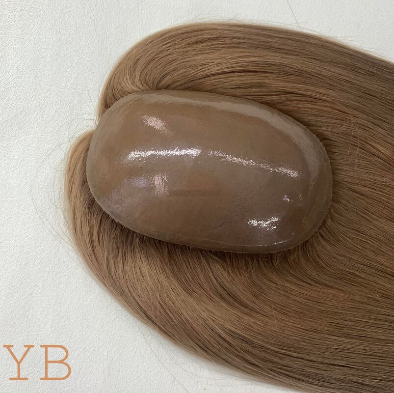 Custom-made Cnc Thick Silicone Toppers Injected Human Hair System Highlight Color Hair Topper for Hair Loss Clients